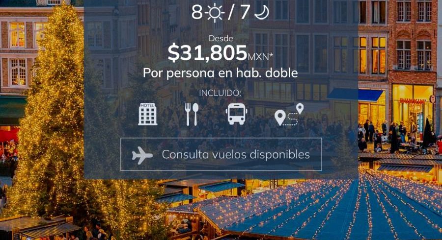Diciembre 2026, la magía de la temporada decembrina combinada con el encanto de ciudades europeas.